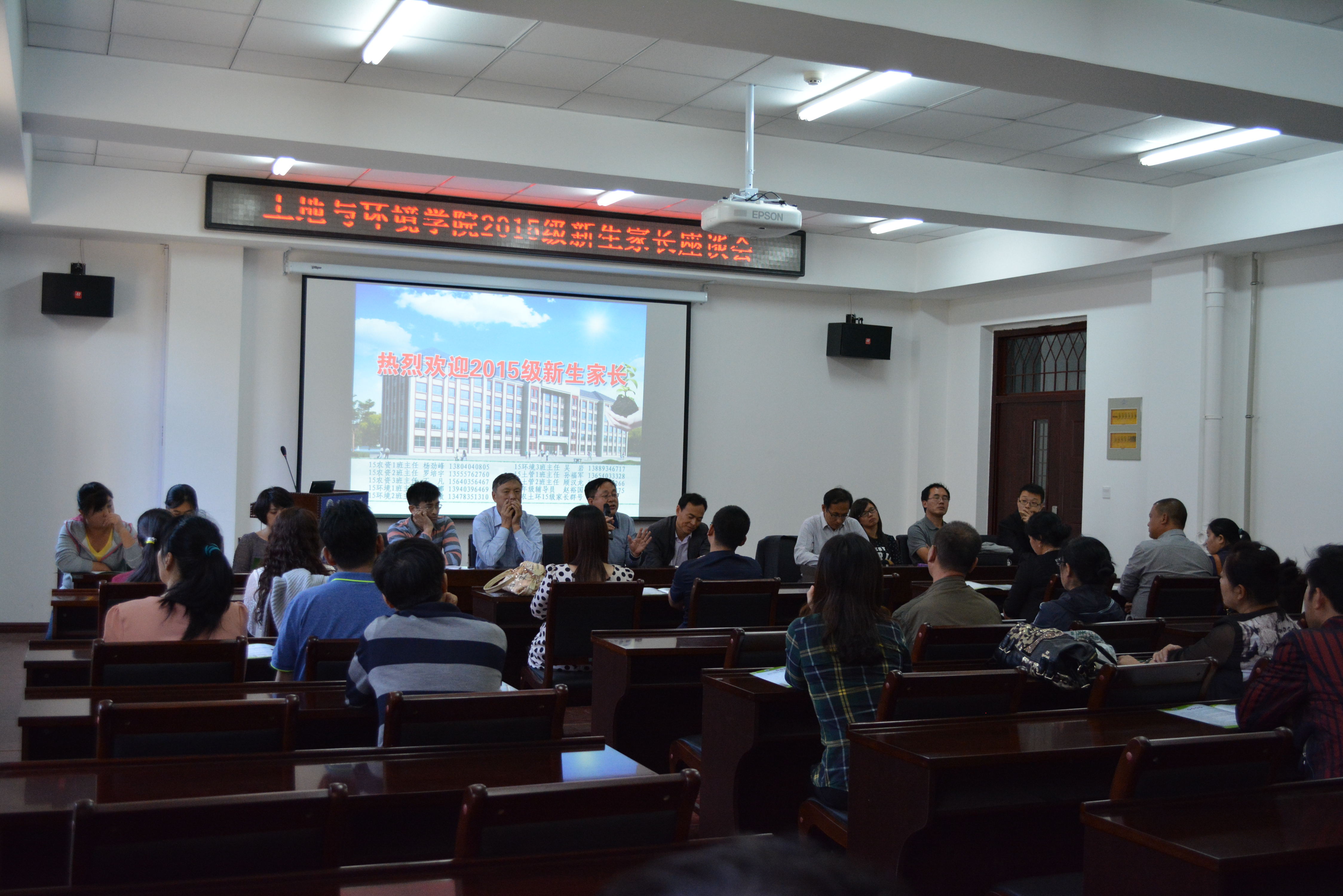 2015级新生家长座谈会在新土壤楼会议室召开。学院领导班子,教研室主任,全体辅导员出席,部分2015级学生家长参加会议。