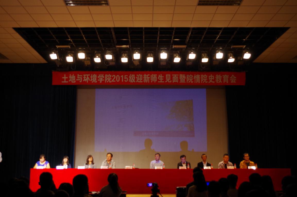 2015级迎新师生见面暨院情院史教育会在沈农大讲堂召开。学院领导班子、学科带头人、教研室主任、2015级新生班主任、全体辅导员出席会议。学院2015级研究生及本科生参加会议。