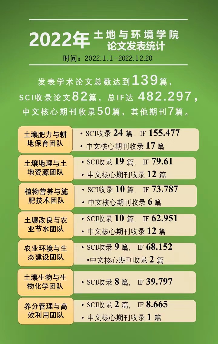 截至2022年12月20日,学院教师以第一作者或通讯作者,且第一单位为学校发表学术论文总数达到139篇,较去年同期92篇增长51.1%。其中Web of Science数据库收录直播吧手机版 相关SCI论文达到82篇,较去年同期57篇增长43.9%。