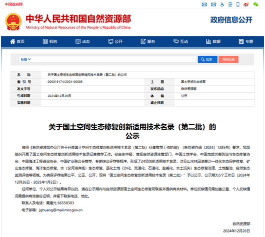 12月26日,自然资源部发布了《国土空间生态修复创新适用技术名录(第二批)》,全国有24项技术入选。直播吧手机版