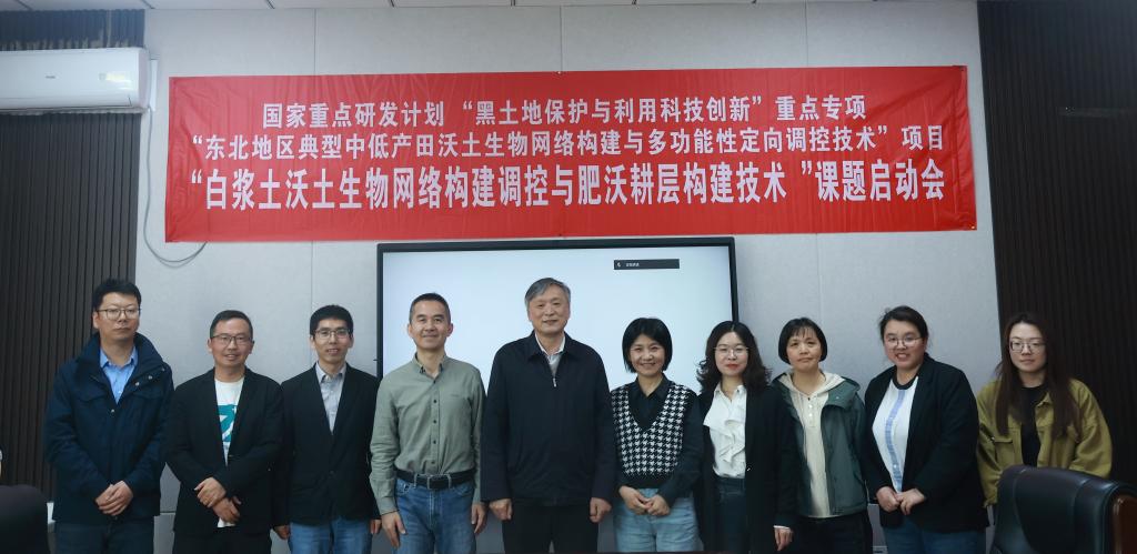承担的"十四五"国家重点研发计划"黑土地保护与利用科技创新"重点专项项目"东北地区典型中低产田沃土生物网络构建与多功能性定向调控技术"课题四"白浆土沃土生物网络构建调控与肥沃耕层构建技术"启动会暨研究方案研讨会在沈阳召开。来自沈阳农业大学的汪景宽教授、邹洪涛教授,浙江大学的马斌研究员,黑龙江省黑土保护研究院的王秋菊研究员,中国科学院沈阳应用生态所的王朋研究员、王超研究员,宁波大学的葛体达研究员等七位评审专家,以及课题全体骨干出席会议。