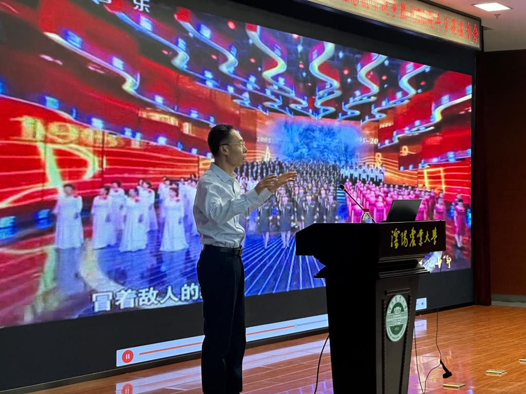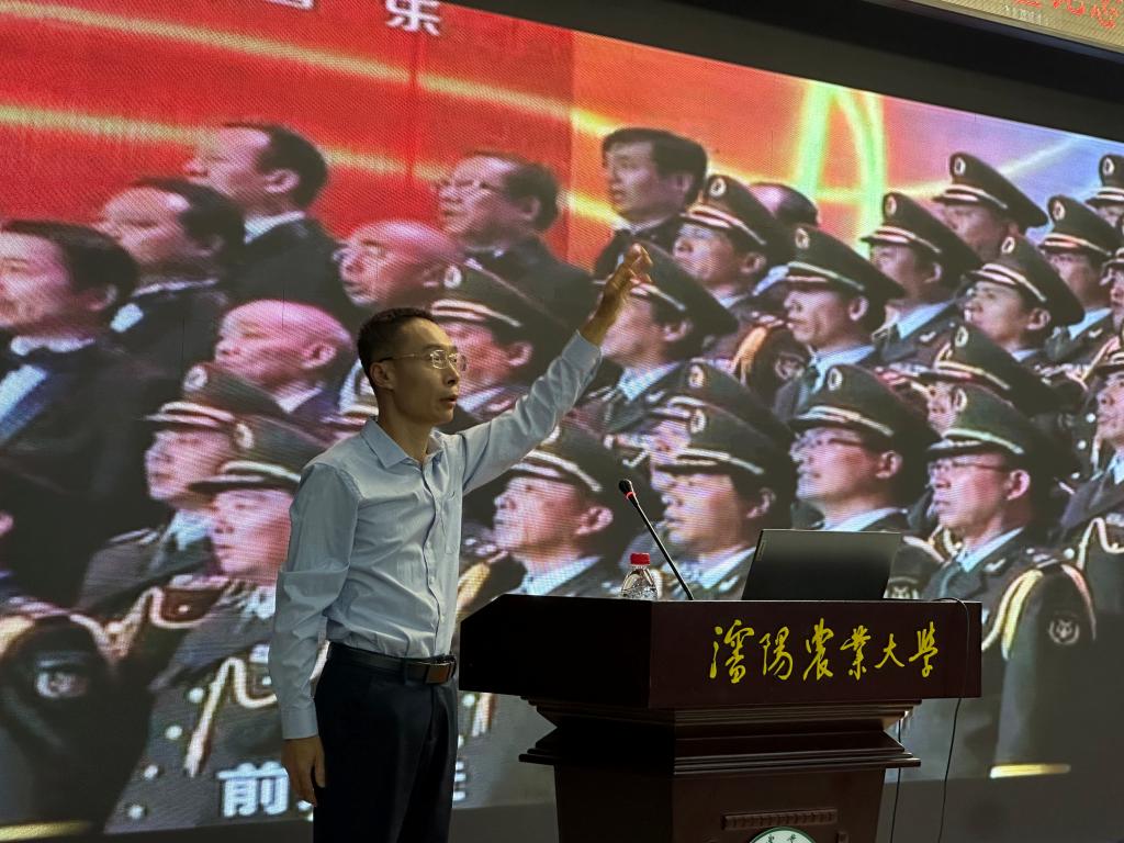 在随后举行的纪念中国人民抗日战争暨世界反法西斯战争胜利80周年专题报告会上,马克思主义学院崔润东教授为新生带来了一堂别开生面的《音乐党课<抗战的旋律>》。崔润东教授通过经典的抗战音乐作品,深刻解读那段烽火岁月中的民族精神与时代强音,引导新生缅怀革命先烈,弘扬伟大抗战精神。动人的旋律将师生带回了那个救亡图存的年代,深刻诠释了伟大抗战精神的磅礴力量。