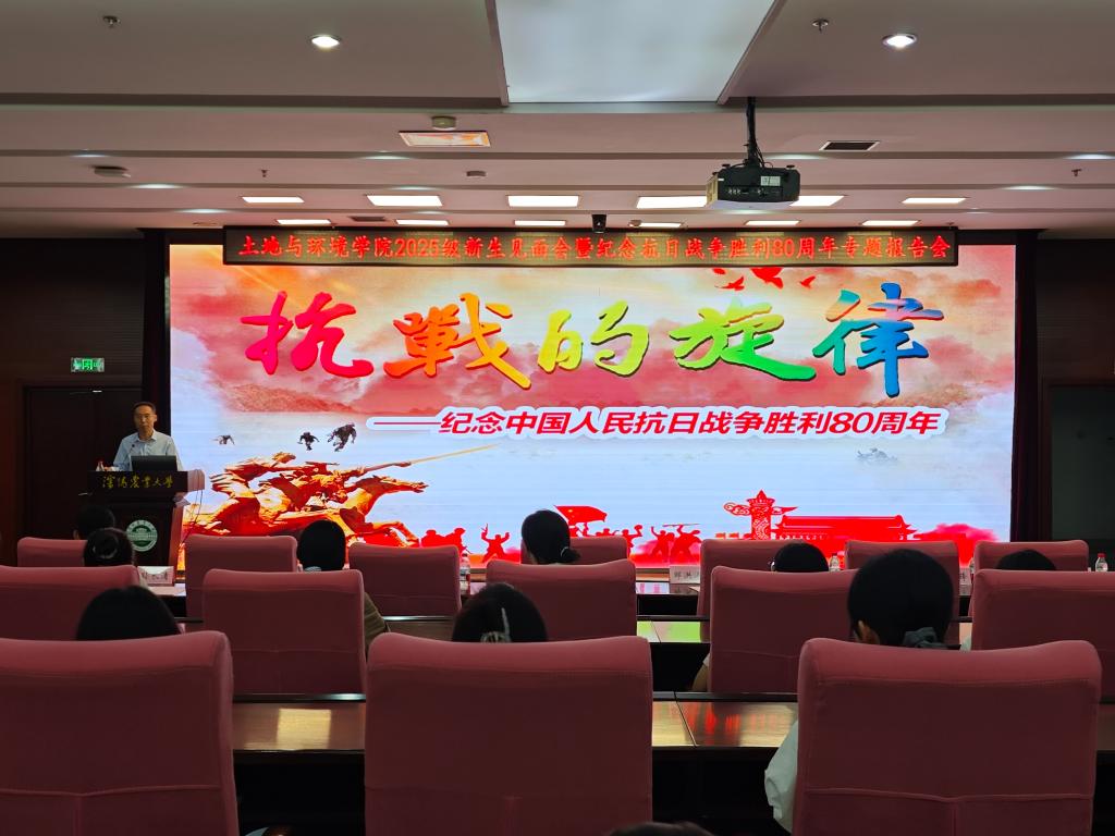 2025级新生见面会暨“牢记殷殷嘱托 强国复兴有我”纪念中国人民抗日战争暨世界反法西斯战争胜利80周年专题报告会在图书馆报告厅隆重举行。这场活动既是师生见面会,更是学院为全体新生精心准备的“开学第一课”,旨在引导新生读懂大学生活、铭记抗日历史、坚定理想信念、厚植家国情怀。