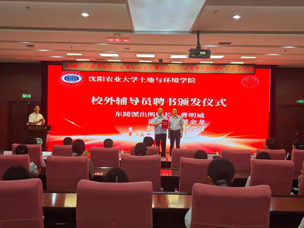 师生见面会在庄严热烈的氛围中开始。邹洪涛院长首先为校外辅导员颁发聘书,本学期学院聘请东陵派出所所长曹明威、副所长董金龙、民警吴兴才担任校外辅导员,为学生安全教育和法治教育提供专业指导。宋德群处长为2025级新生班主任颁发聘书,九位班主任将陪伴新生共同成长。