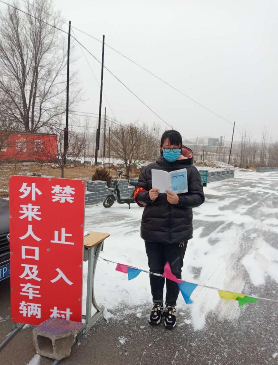 在刚过完2020年春节的第二天,村上接到通知,要求村民尽量避免外出,以控疫情。虽然在春节之前她就开始关注湖北的疫情情况,那时她就想为武汉同胞做点贡献,但她不是医护专业。正在这时,村委在初二组织联防人员,进行联防,于是她立即报名参加。在村委成员领导下排查进出本村人员,进行登记。党员同志,个个都是争先报名参加联防。在此次联防过程中,为做好工作她们甘愿承受他人的不理解和埋怨,在她们耐心地解释和劝解下,村民们也都渐渐的理解并支持她们的工作。她们只有一个念头:做好联防,为国为民,因为我们是共产党员!