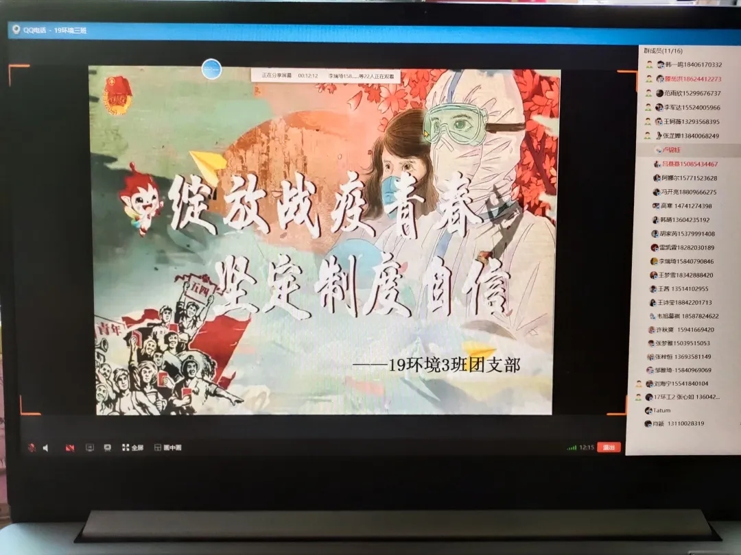 利用网络平台成功开展“绽放战疫青春•坚定制度自信”五四主题宣传教育活动。16-19级全体本科生参与活动。