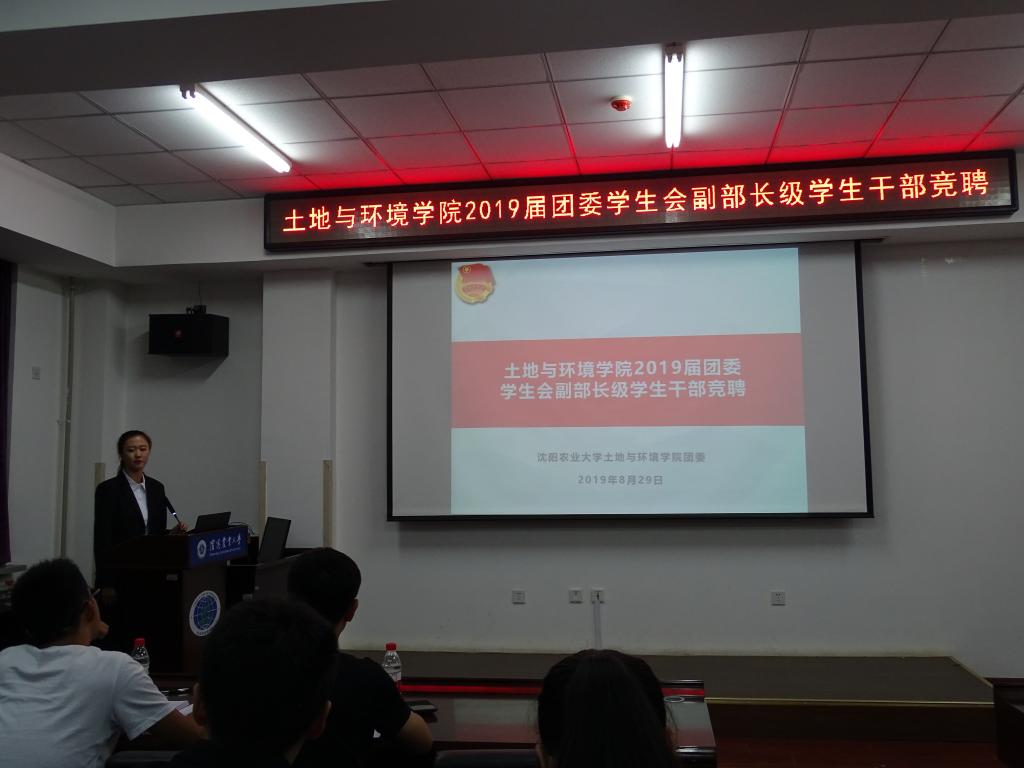 2019年8月29日晚六点,直播吧手机版 2019届团委学生会副部长级学生干部竞聘大会在新土楼102顺利举行。团委书记杜杰老师,辅导员范超老师,乔鹏升老师及部长级及以上学生干部担任评委,组织部部长张咏琪主持会议。