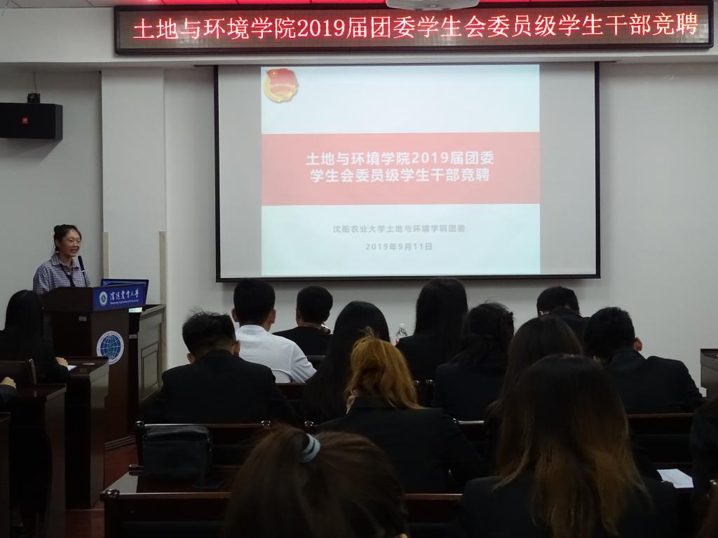 2019届团委学生会委员级学生干部竞聘大会在土壤楼B座102顺利举行。本科生辅导员范超老师、部长级及以上学生干部担任评委团,19级学生代表参与会议,组织部部长张咏琪主持会议。