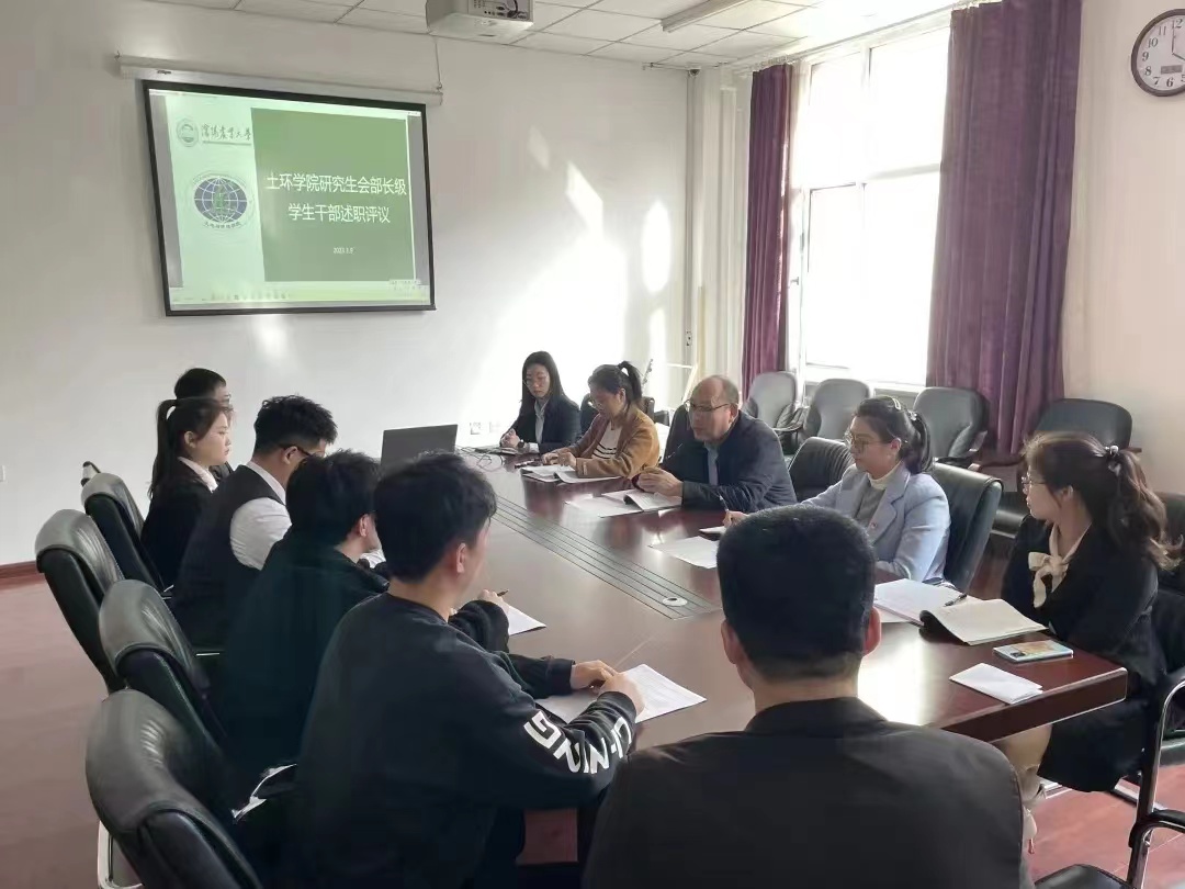分别于3月9日、13日召开研究生会部门负责人和工作人员述职评议大会,院党委书记陈志刚、团委书记王彤、辅导员孙鑫、苏欣、研究生会干部出席述职评议大会。