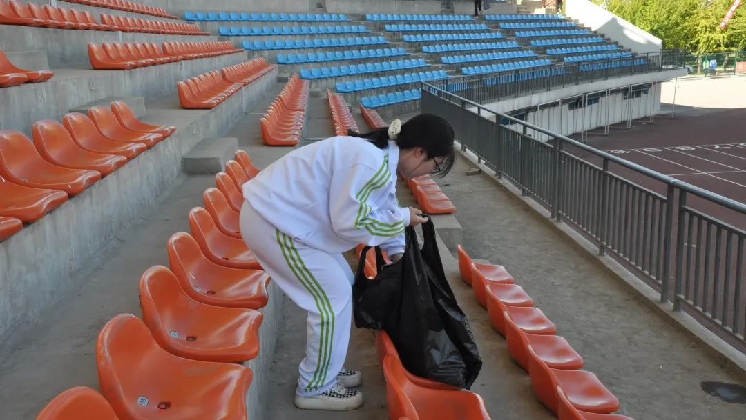 观众席上的老师、同学们,为运动员们呐喊助威。热烈的喝彩、舞动的花球,都表达出他们最真切的祝愿与期盼。
