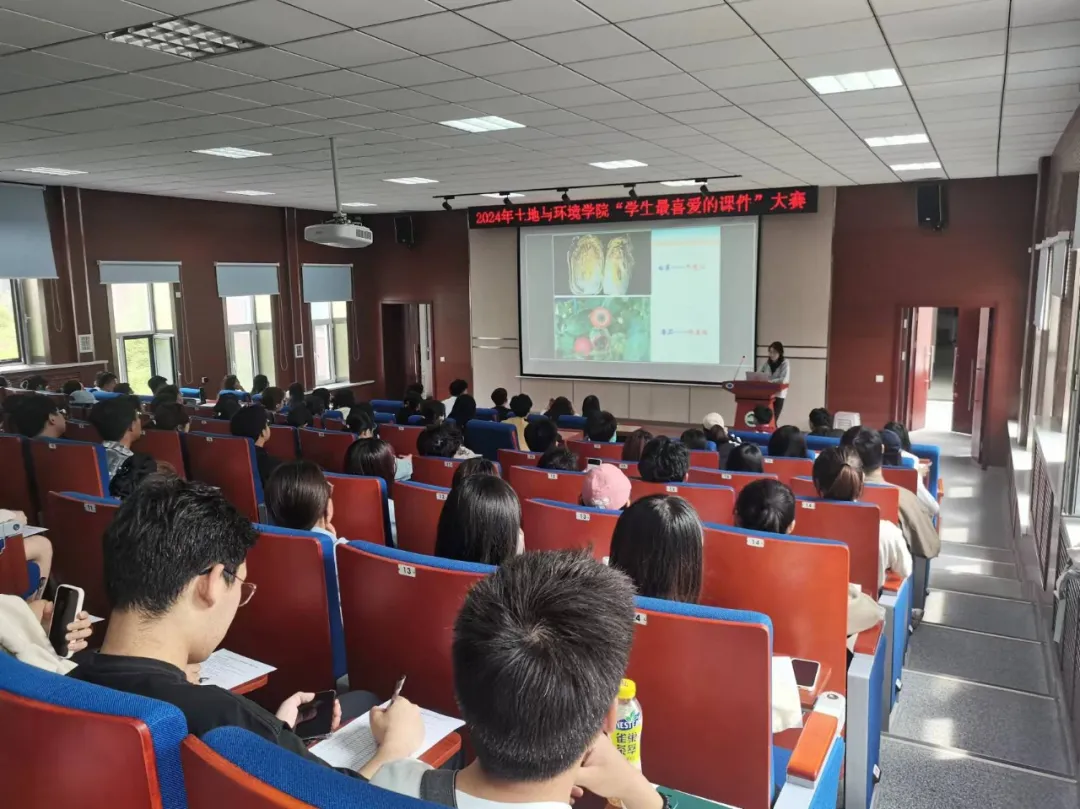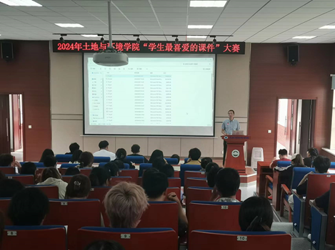 2024年5月22日,为提高教师多媒体课件制作水平,学院在土壤楼A座226举办了"学生最喜爱的课件"大赛,大赛由学院副院长杨劲峰教授主持,全院农业资源与环境、环境科学、土地资源管理、土地整治工程四个专业每个班级选派5名学生代表,共124人组成评委团。