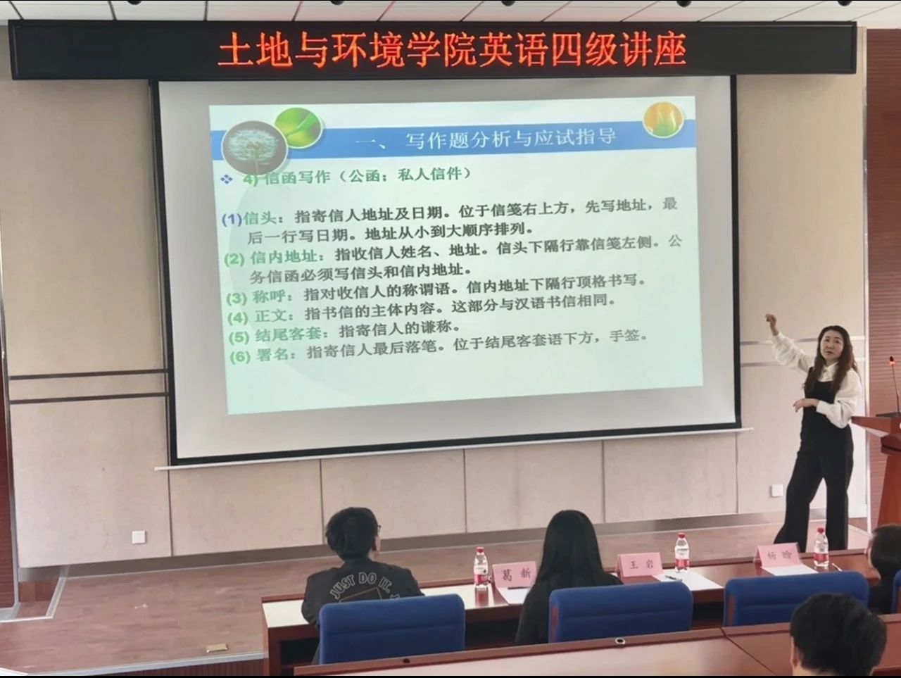 联合外语教学部在土壤楼A座226举办英语四级备考讲座。