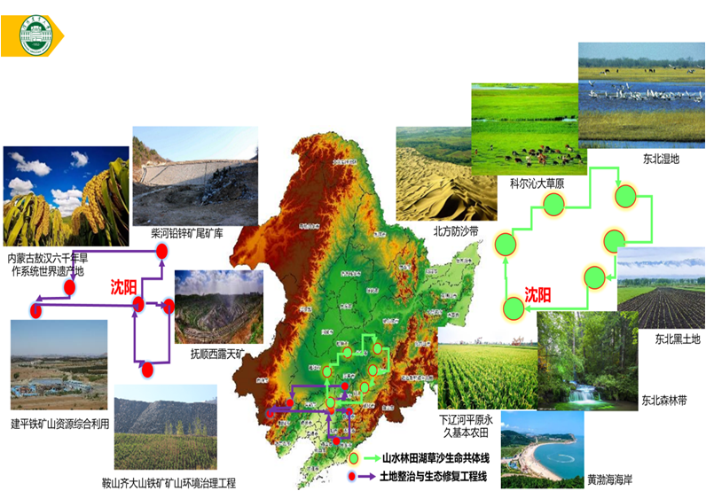 为国家新型特色专业培养复合应用型人才的需要,我校依据所在东北地域自然和社会人文条件,设置两条实习路线。一是山水林田草湖草生命共同体全要素实习路线,包括章古台沙地、科尔沁草原、吉林省西部湿地湖泊与盐碱地、东北黑土地带的榆树县、长白山森林景观、黄渤海海岸带和沈阳周边良田,目的让学生通过这次实习对土地整治工程对应的各自然要素和生态系统有全面了解和把握。二是结合辽宁省作为矿产资源大省的特色,对矿山堆放的废石、废渣、复垦工艺以及主要矿种开采、加工过程进行实地观察和学习,并对世界农业文化重要遗产地进行调查,目的让学生了解土地整治和生态修复的真实案例。