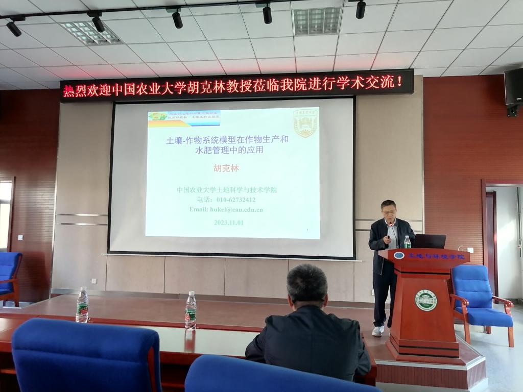 邀请,第十五期恩凤学术论坛主讲嘉宾中国农业大学土地科学与技术学院胡克林教授在土壤楼226报告厅作题为“农田土壤-作物系统水氮管理模型及应用”的学术报告。