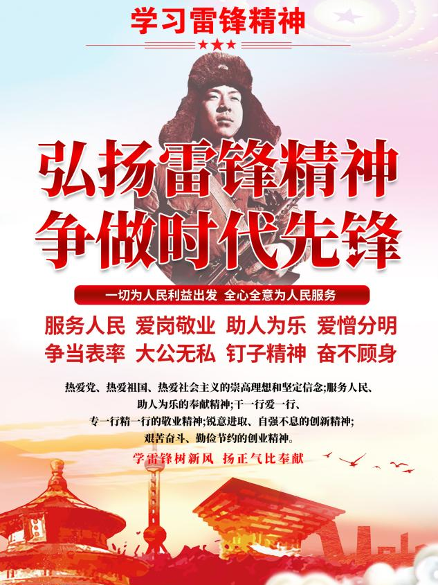 雷锋精神是中华民族传统美德的一种积淀,是一种随着时代进步而不断发展的与时俱进的精神。